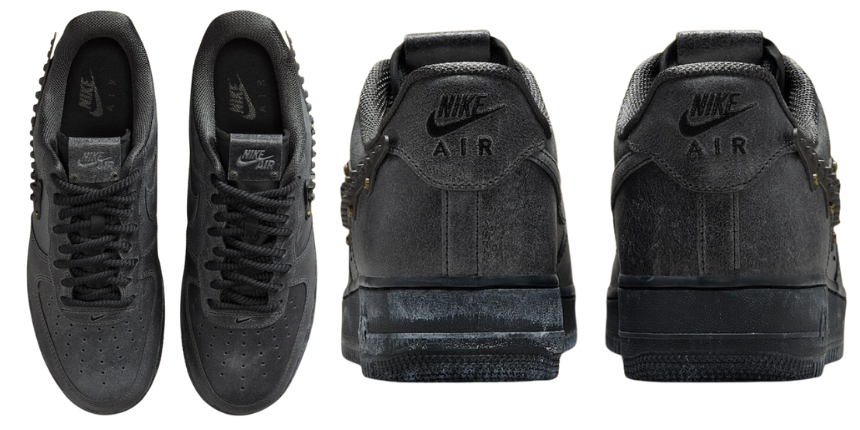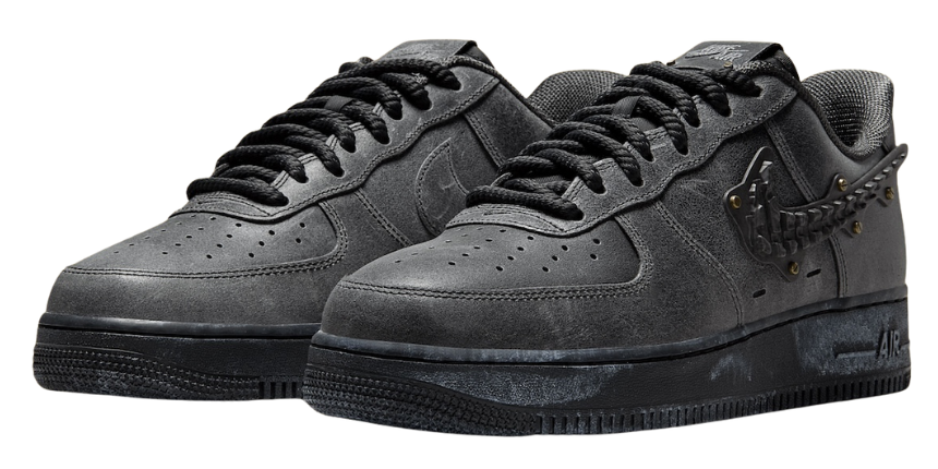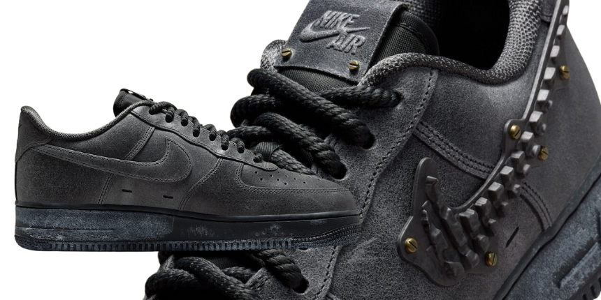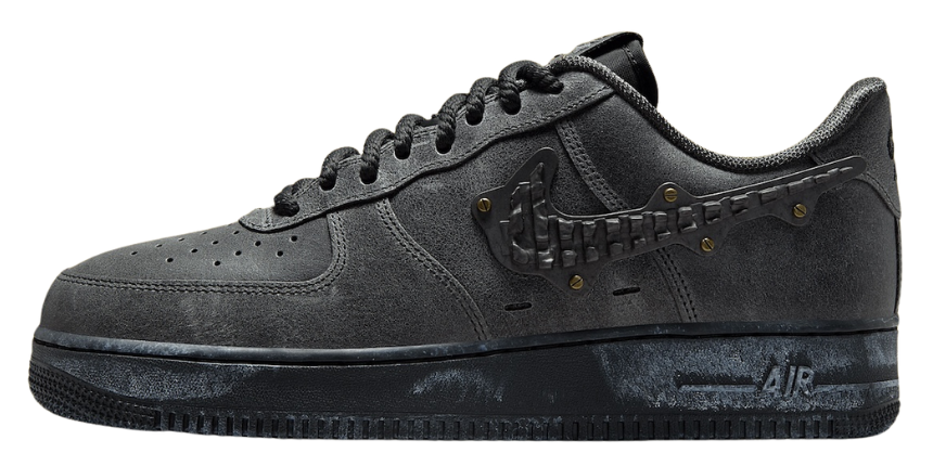 Nike takes the worn-in look to new extremes with the Air Force 1 “Metal Work” edition. The upper arrives in faded anthracite suede, treated with burnished textures and scuffed edges that mimic years of use. It doesn’t look new—and that’s exactly the point. The pre-aged aesthetic leans into something more industrial, more raw.