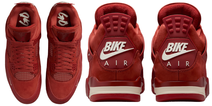 Draped in bold orange-red suede, this Air Jordan 4 draws inspiration from New York City’s brick buildings, symbolising both the city’s architectural landscape and Sylvester’s relentless work ethic. The mini embroidered Swoosh on the toe cap adds a unique touch, while “Bike Air” branding replaces the usual “Nike Air” logo on the heel. Reflective 3M accents also ensure visibility for nighttime rides, tying into his deep connection with BMX culture.