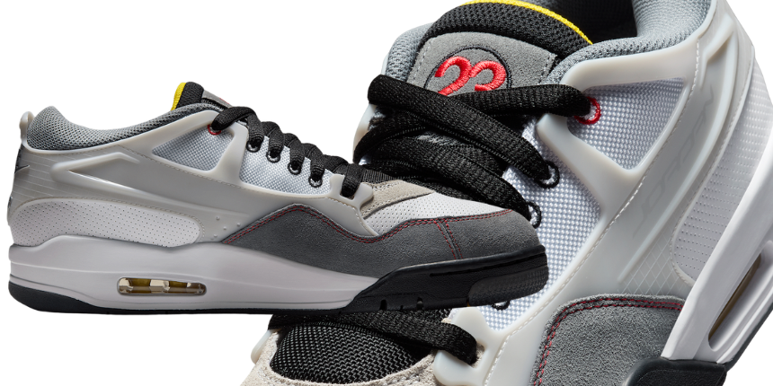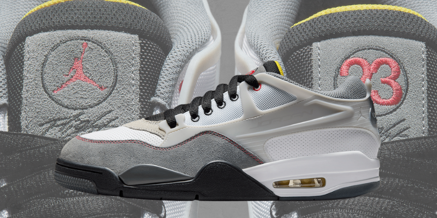 Just like the OG “Motorsports” from 2017, this AJ4RM keeps it clean. Working on top of a crisp white mesh base, it’s overlaid by light grey rubber panelling across the lateral and medial sidewalls. “Smoke Grey” suede hits the mudguard, while perforated leather embraces the toebox to keep things nice and breathable. The collar has also been padded for enhanced comfort.