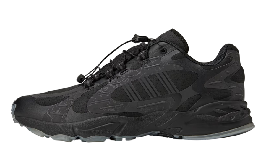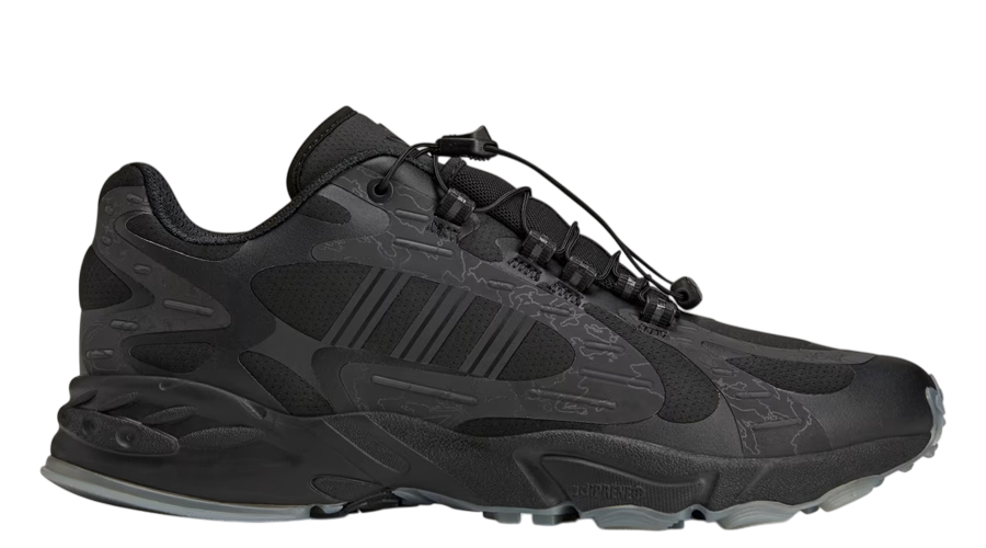 The 100 Thieves × adidas Originals Savage “Black” hits hard with its sharp combination of streetwear, gaming energy, and rugged outdoor cues. adidas teams up once again with 100 Thieves to deliver a sneaker packed with character. Reflective geo-camo wraps across the upper, tapping into the signature look of the gaming powerhouse. Red logos pop against the black base, and the frosted outsole finishes it off with a clean, icy edge.