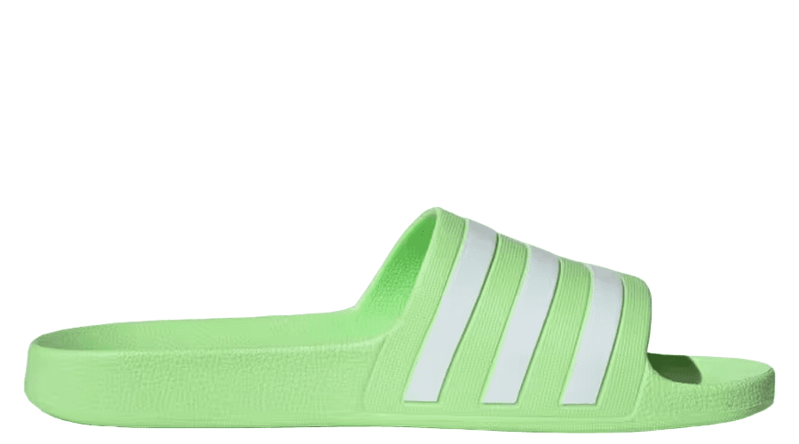 The adidas Adilette Aqua Slide “Green Spark” IF6046 presents a perfect combination of practicality and minimalist design. Its design remains straightforward, showcasing the iconic 3-Stripes, a testament to its authentic adidas DNA. This model is tailored for post-swim relaxation, its one-piece moulded EVA upper ensuring both durability and a comfortable fit, while its quick-drying characteristics facilitate a smooth transition from poolside to street.