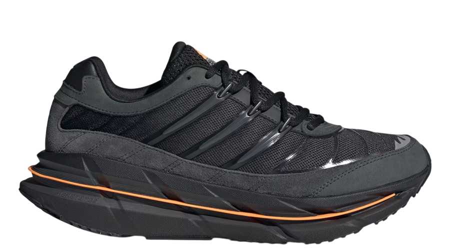 The adidas Adistar Harmony “Carbon Black Cream Orange” combines retro design cues with performance-ready innovation. Inspired by early 2000s adidas models, the shoe features a breathable mesh base layered with gradient prints and mixed-material overlays that capture the look of that era. Metallic eyelets, TPU stripes, and graphic detailing complete the upper, giving it an authentic archival feel while keeping the build modern and versatile.