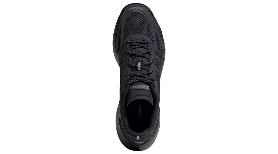 The upper is made from a combination of textile and synthetic materials, ensuring a lightweight and durable construction. The Core Black base is complemented by subtle Iron Metallic accents, creating a clean and versatile finish suitable for a range of activities.