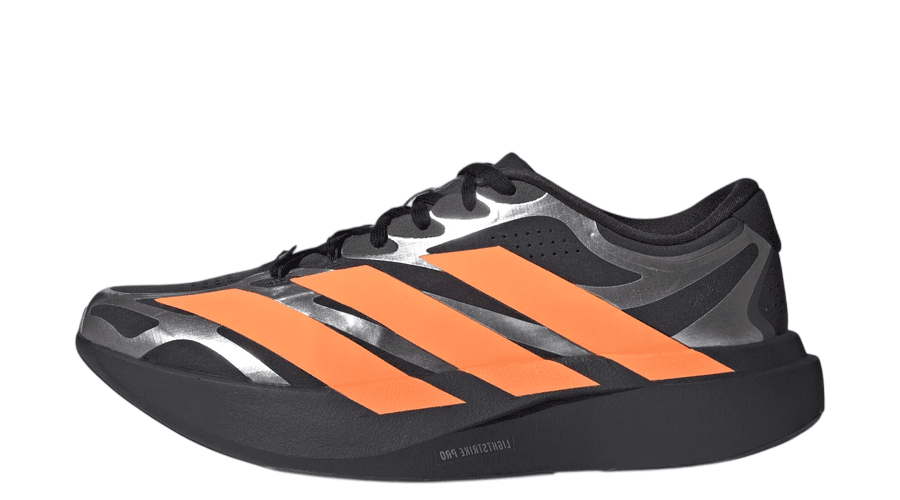 Visually, the design leans heavily into adidas racing heritage. Oversized 3-Stripes branding stretches across the sidewalls, giving the silhouette a bold, track-inspired look. The colour palette adds even more energy. Carbon tones lead the base, while Lucid Orange accents pop against the darker upper. Subtle Silver Metallic touches complete the finish.
