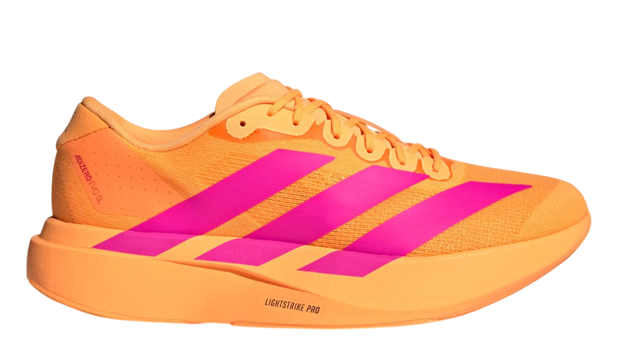 The adidas Adizero Evo SL “Flash Orange Pink” channels the speed-focused spirit of the Adizero line into a lightweight trainer that feels as fast as it looks. Drawing cues from the record-breaking Pro Evo 1, this edition brings racing innovation into a shoe built for everyday runs and casual wear.