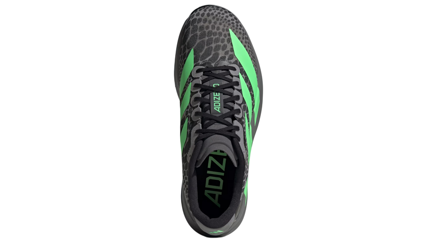 The upper combines synthetic and textile layers for breathability, finished in a crisp Grey Three base with striking Lime Burst accents and Core Black detailing. A lace closure locks in a secure fit, while a soft textile lining ensures step-in comfort from the first wear. Subtle Adizero branding reinforces its connection to adidas’ performance line, giving the shoe both credibility and presence.