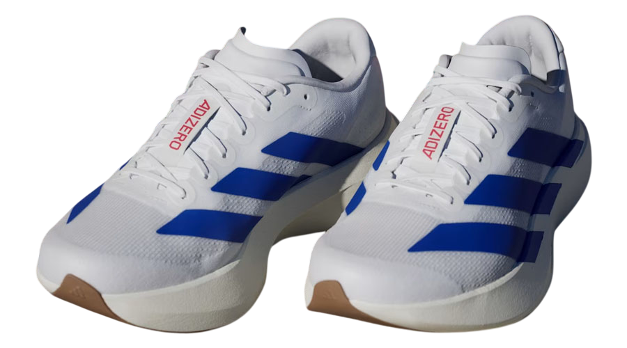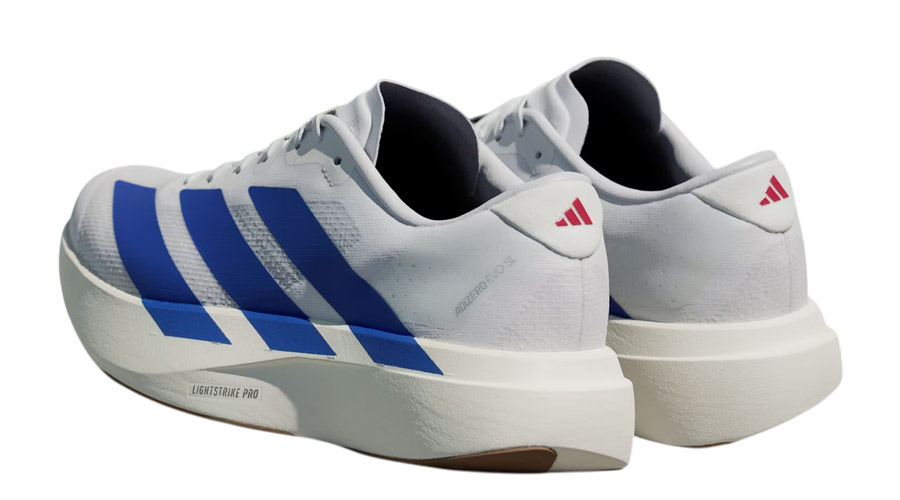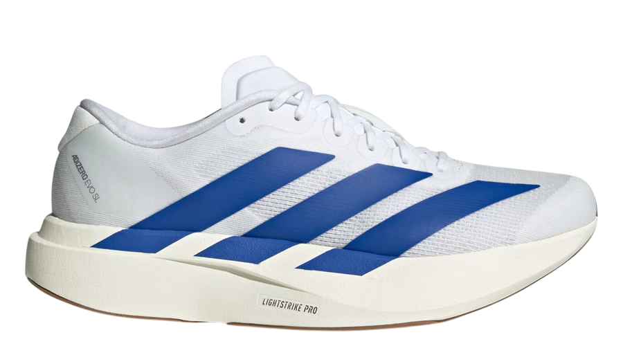 The adidas Adizero Evo SL “White Royal Blue” reworks race-ready DNA into a lighter, more wearable package. Pulled from the same family tree as the Pro Evo 1, it shares the spirit of performance, but adds a versatile look that works well beyond competition days. This pair leans on a clean Cloud White base, highlighted by bold Royal Blue detailing and subtle hits of Pure Ruby for contrast.