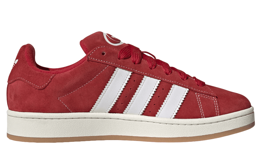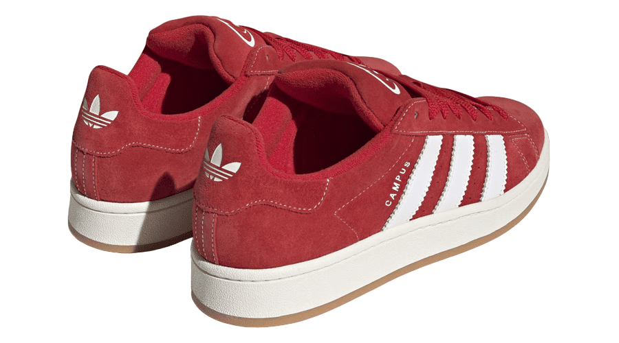 On the design front, the Campus 00s Scarlet Gum amplifies classic features with a punchy spin. The upper is shrouded in a vibrant ‘Better Scarlet’ tone with ‘Cloud White’ three stripes proudly standing out, delivering a stark contrast that enhances the aesthetics. The suede exterior further accentuates the classic feel, lending the shoe a buttery tactile sense alongside adding durability to its repertoire.