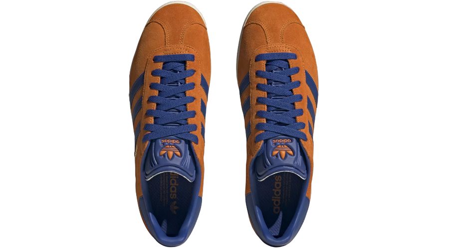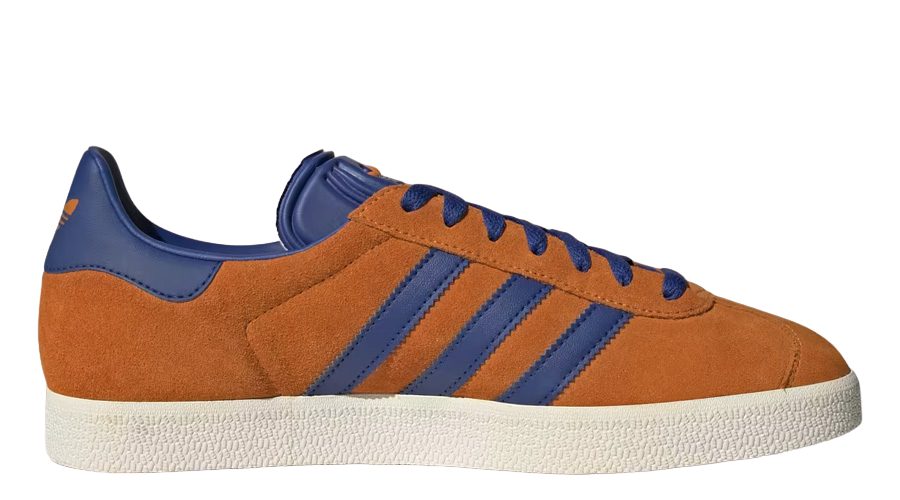 The adidas Gazelle “Bright Orange Royal” GY7374 is a take on the classic ’60s Gazelle trainer, known for its timeless appeal and versatility. This version features a synthetic suede upper with leather overlays, providing durability and a distinctive look. Contrasting 3-Stripes highlight the iconic adidas design.