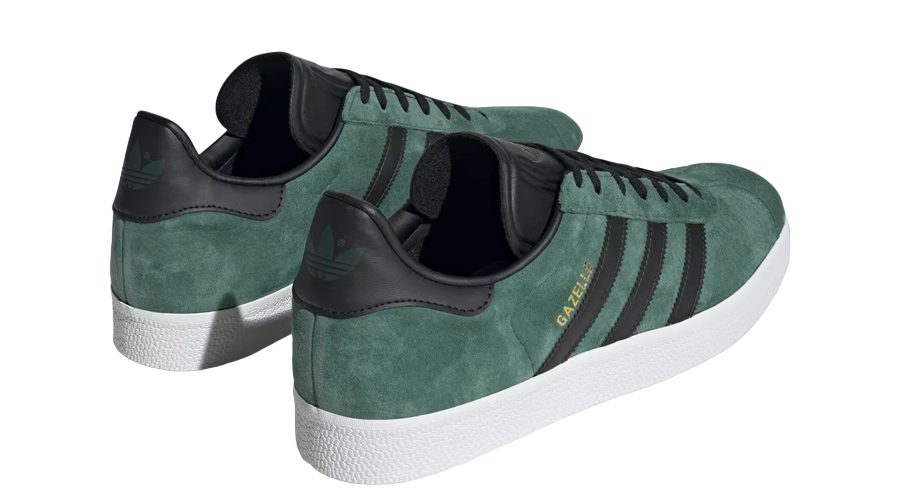 The shoe’s colour scheme of Collegiate Green, Black, and Gold Metallic gives it a distinctive appearance. The adidas Gazelle “Collegiate Green” BB5487 caters to those who appreciate trainers that offer a blend of historical authenticity, durability, and comfort.