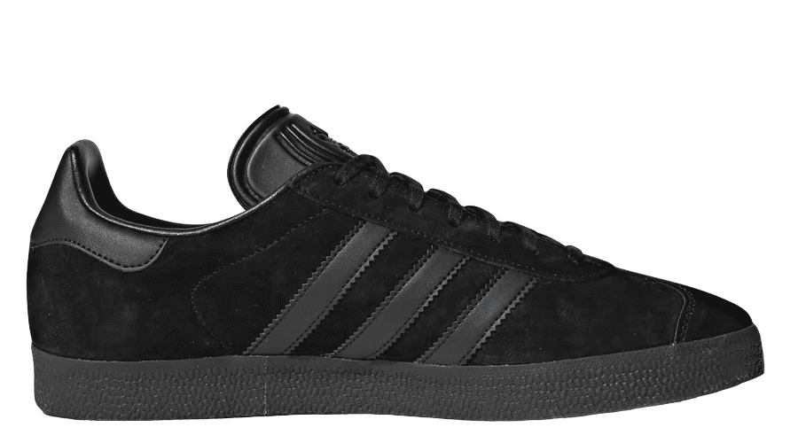 Designed for durability, the Gazelle “Triple Black” includes synthetic overlays that contribute to its robust construction. The interior of the shoe is lined with synthetic material, offering comfort for daily wear and extended use. A key design element is the Gazelle logo on the quarter panel, which adds a touch of brand heritage to the shoe.