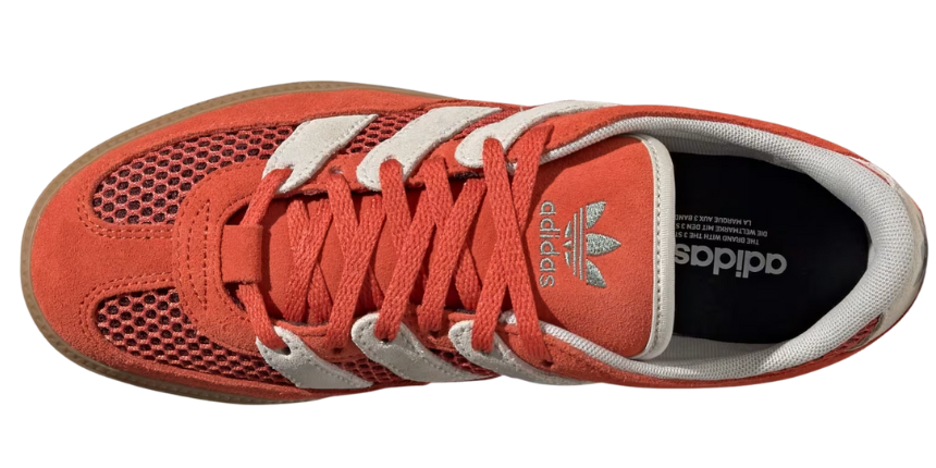 At first glance, the deep Preloved Red suede steals the spotlight, wrapping the upper in rich, premium material. But look closer, and the layered two-tone mesh underlays add depth and breathability, bringing a lightweight feel that contrasts perfectly against the solid suede panels. Cream-coloured Alumina 3-Stripes slice through the sides, offering a clean pop that draws the eye without overpowering the design.