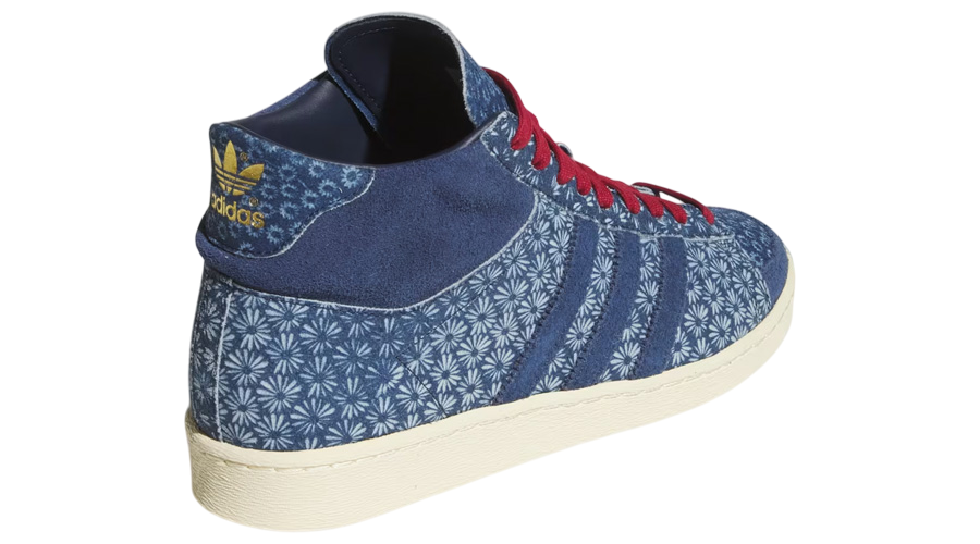 Here, the traditional leather build gives way to rich suede, dyed in a deep indigo hue inspired by classic Sashiko denim. The material choice gives the shoe a softer edge and a handcrafted feel that nods to traditional Japanese techniques. Red laces add a vibrant pop, reminiscent of Sashiko stitching, while gilded branding across the tongue and ankle brings subtle contrast and a premium touch.