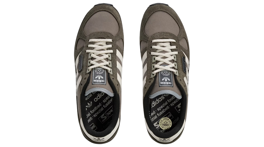 This pair comes dressed in a grounded mix of olive green and beige, offering an earthy palette that pairs perfectly with outdoor fits or neutral streetwear. The upper combines lightweight mesh and durable leather overlays, keeping the shoe both breathable and sturdy. Signature serrated 3-Stripes sit proudly on the sides, complemented by SPZL branding, the Mod Trefoil logo, and the classic Trefoil emblem for that unmistakable adidas heritage touch.
