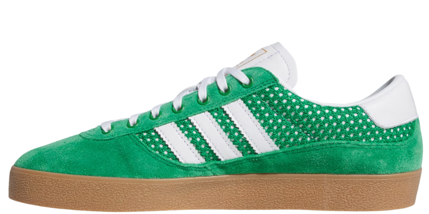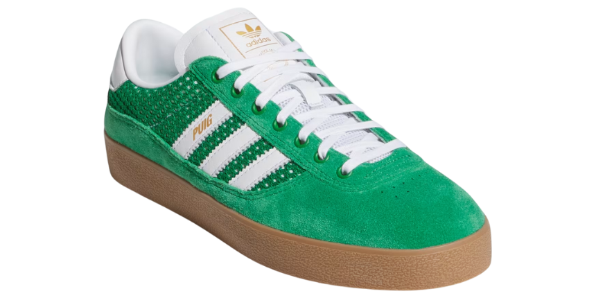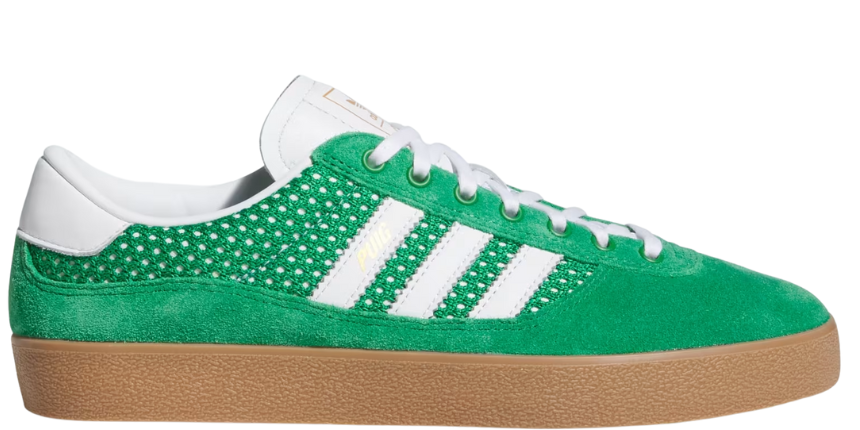 The adidas Puig Indoor Green brings a fresh punch of energy to the skate scene. Designed with Lucas Puig’s signature touch, this shoe bridges skate performance and streetwear flair with effortless charm.