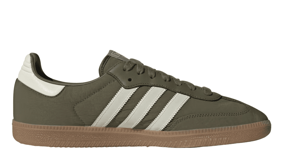 This latest version stays true to the Samba’s iconic design, featuring a nylon upper in a crisp “Olive” hue, complemented by the classic adidas 3-Stripes. But it’s not just about looks; the Samba OG is built for comfort and durability. The interior is lined with soft textile, offering a comfortable fit for everyday wear. On the outside, the gum rubber outsole ensures reliable grip on various surfaces, making it as practical as it is stylish.