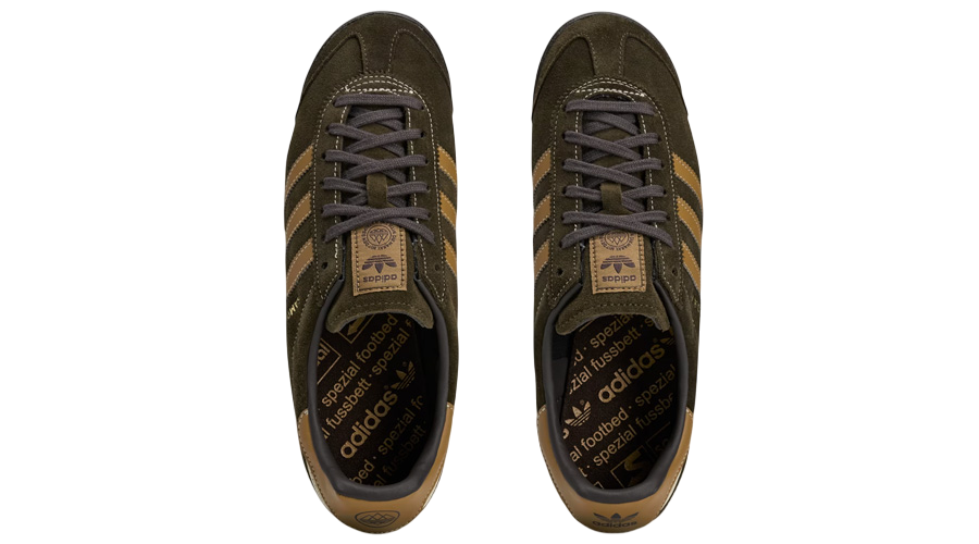 The upper of this sneaker features a rich brown leather that delivers both durability and a sleek, premium look. High-quality materials are reinforced with a rubber toe bumper, adding strength where it counts. The signature 3-Stripes run along both sides, giving the shoe an instantly recognisable silhouette. The co-branded Trefoil and Mod Trefoil logos on the tongue and rear nod to the rich heritage of adidas, specifically the Spezial line’s place in sneaker culture.