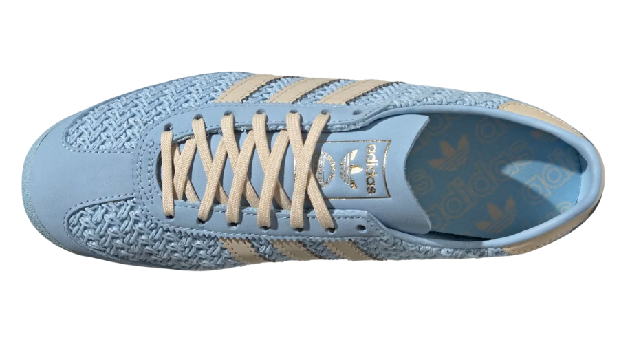 The upper is made from breathable cotton mesh with suede overlays that wrap the toe and heel. Clean, soft blue tones cover most of the shoe, with crisp white 3-Stripes on the side for contrast. The vintage foam tongue adds character and keeps things comfortable up top.