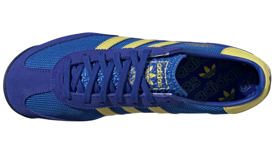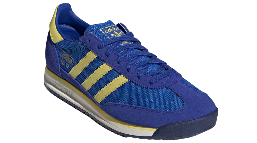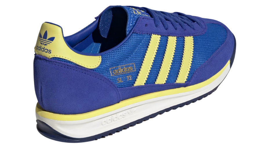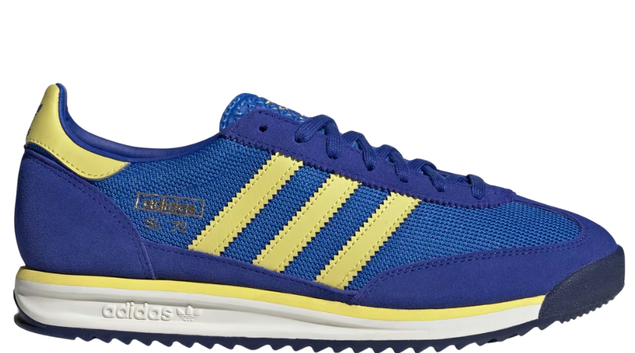 The upper comes dressed in a soft blue textile base, paired with smooth suede overlays around the toe, eyestays, and heel. A golden “SL 72” stamp sits on the lateral side, and adidas keeps it classic with serrated 3-Stripes in bright yellow leather. Matching yellow hits return on the heel tab, while the navy ripple outsole keeps the look grounded.
