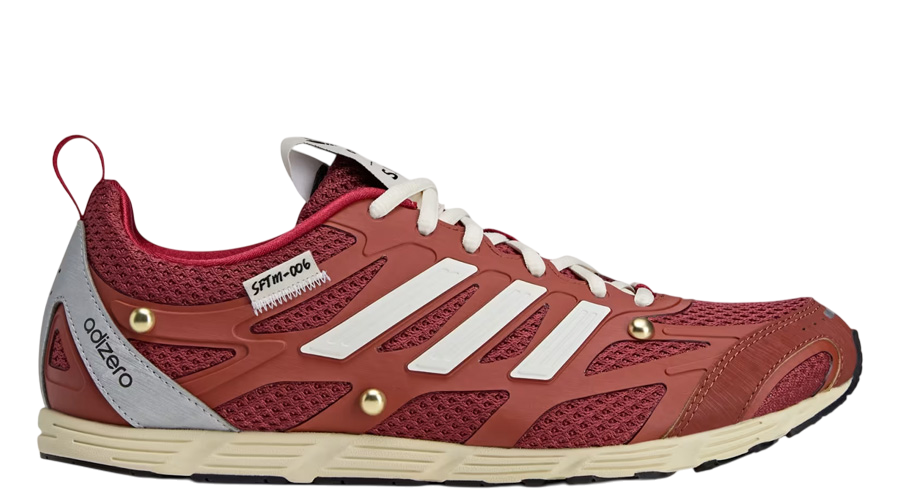 What sets this collaboration apart is how it balances performance heritage with artistic direction. The Adizero lineage reflects adidas’ running DNA, but in Song for the Mute’s hands, it transforms into something equally suited for city streets. The neutral undertones of cream and sepia help ground the vivid red, allowing the shoe to work across a range of outfits without losing its statement feel.