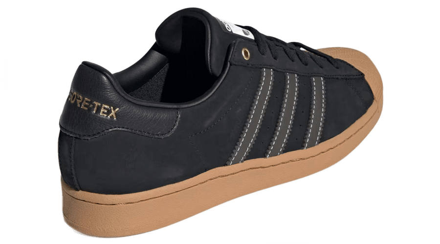 The adidas Superstar Gore-Tex “Core Black Gum” IF6161 is a remarkable footwear choice engineered to excel in various weather conditions. Regardless of whether you encounter rain or snow, these sneakers are designed to offer complete protection. The key feature is the inclusion of a GORE-TEX membrane, which serves a dual purpose: it allows for breathability, ensuring your feet stay comfortable, while also acting as a shield against the elements. Remarkably, this protective design doesn’t compromise the timeless style associated with Superstar shoes.