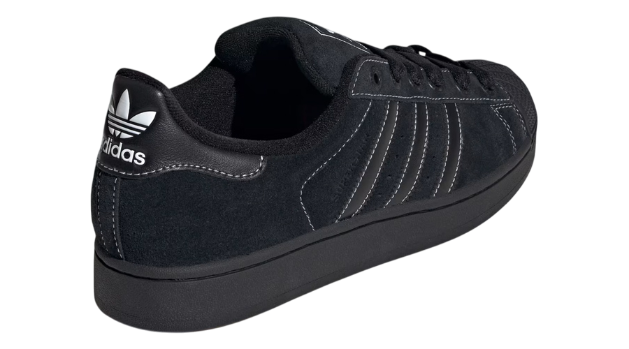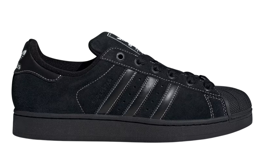 The Adidas Superstar II “Core Black” puts a fresh spin on a legendary silhouette, blending its classic roots with premium materials for a refined look. First introduced in the ‘70s as a basketball shoe, the Superstar has since cemented itself as a cultural icon, worn by artists, athletes, and sneaker fans worldwide. This iteration keeps things sleek with a suede upper, offering a softer feel compared to traditional leather versions. The contrast stitching adds subtle detailing, while the signature Three Stripes and Adidas branding stay true to the original design.