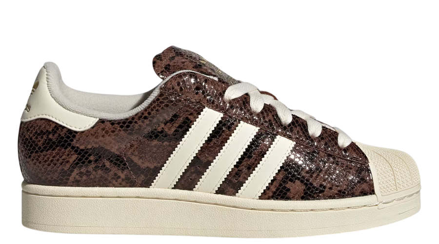 The adidas Superstar II “Preloved Brown Snakeskin” adds a bold twist to one of adidas’ most iconic silhouettes. Originally born on the basketball court before moving into music and street culture, the Superstar has remained a global staple for decades. This edition leans into premium materials and striking textures while staying true to the shoe’s heritage.