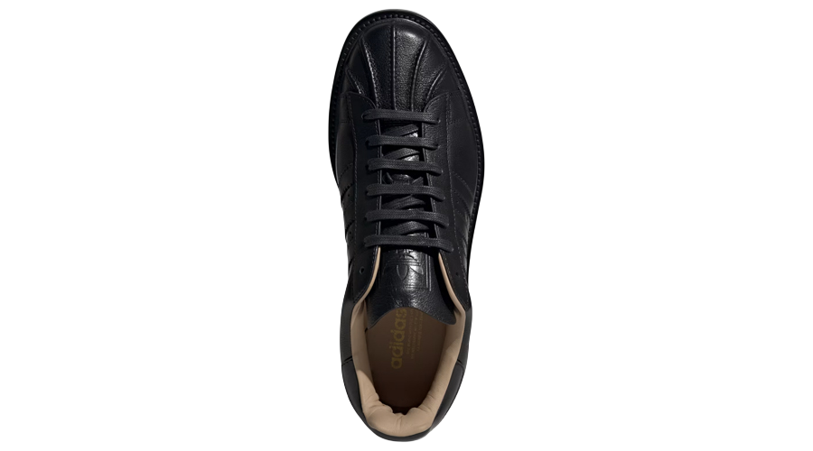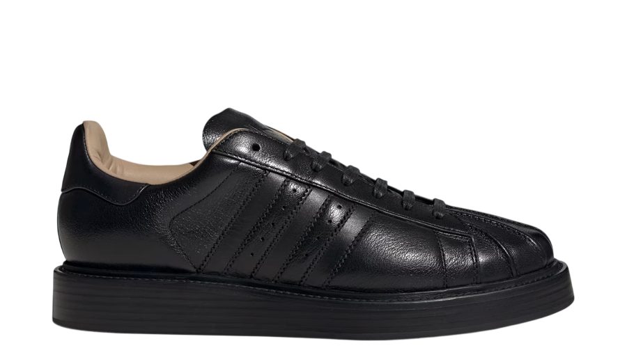 The entire upper is wrapped in premium Italian leather, sourced locally and finished in deep black. Even the shell toe gets a rethink here. Instead of the usual rubber, adidas opts for pleated leather, creating a softer look that still feels unmistakably Superstar. It’s subtle, but you notice it straight away.