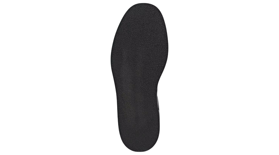 Underfoot, the tooling moves away from the standard cupsole. A stacked leather outsole replaces it, paired with leather welting and a crepe-like tread pattern. The result feels more formal and structured, with a different underfoot feel compared to classic Superstars. Traction takes a back seat, but style steps forward. A beige sock liner breaks up the blacked-out finish and adds a touch of contrast inside.