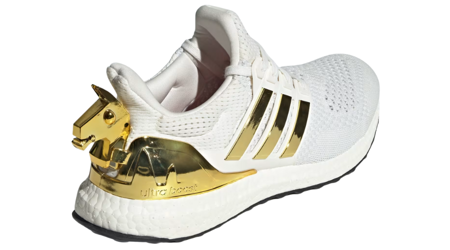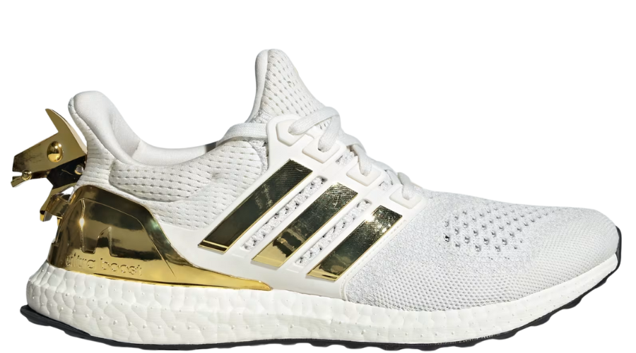 Sticking to the Ultra Boost’s signature comfort, this pair features a Primeknit upper in crisp Cloud White, offering a snug, sock-like fit. The full-length BOOST midsole keeps every step cushioned, perfect for gaming marathons or daily wear. But the real highlight? Metallic Gold accents on the Three Stripes, tongue branding, and heel clip, mirroring the legendary crown itself.