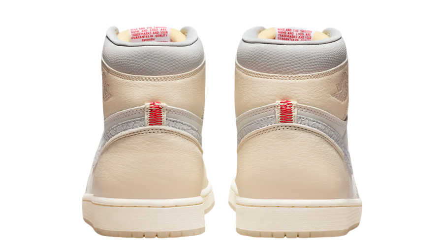 Touches of University Red break up the calm palette. You’ll see them on the outsole and on the heel stitching. They add a bit of heat without overwhelming the softer body of the shoe. The exposed foam tongue brings a vintage vibe, giving the pair some of that early-era charm Jordan fans love.