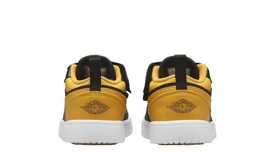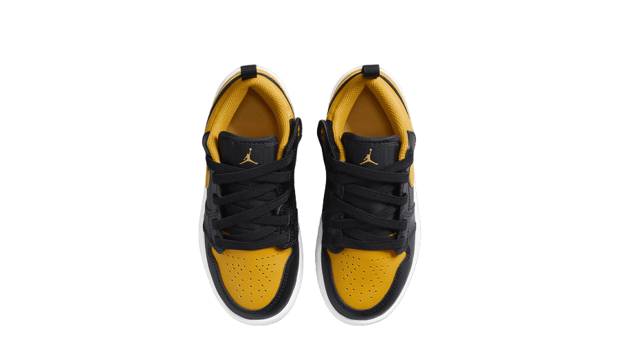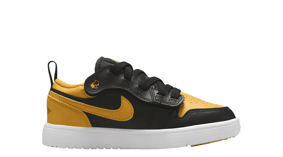 In summary, the Air Jordan 1 Low ALT PS “Black Yellow Ochre” combines functionality, durability, and practicality, making it an ideal choice for parents seeking reliable footwear for their children. With its classic design and practical features, these shoes are sure to become a staple in any young sneaker fan’s wardrobe.