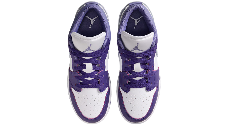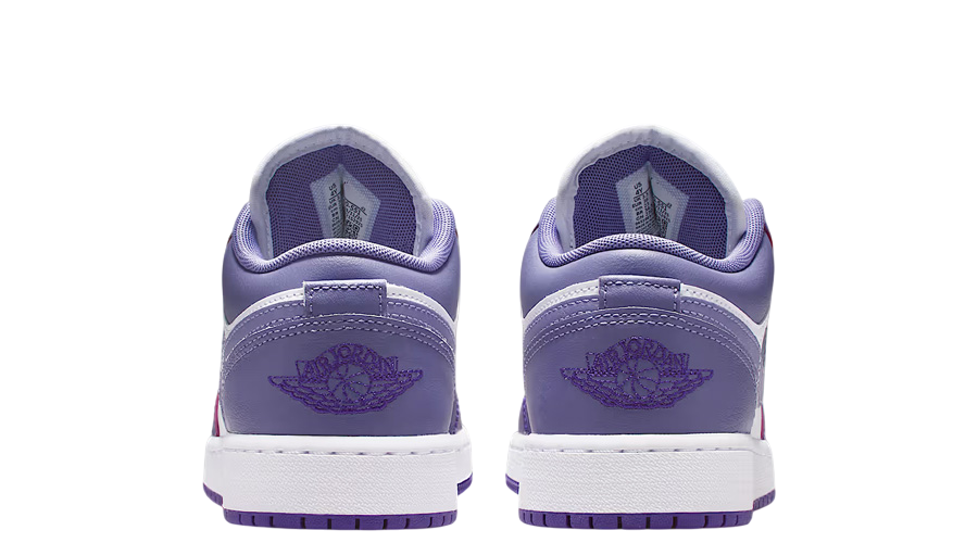 Branding cues remain faithful to Jordan’s history, with an embroidered Jumpman logo on the tongue and the classic Wings insignia pressed into the heel tab. The Air Jordan 1 Low GS “Court Purple Dusty Amethyst” blends a storied legacy with a contemporary edge, making it a versatile and durable option for younger wearers who value both comfort and design pedigree.
