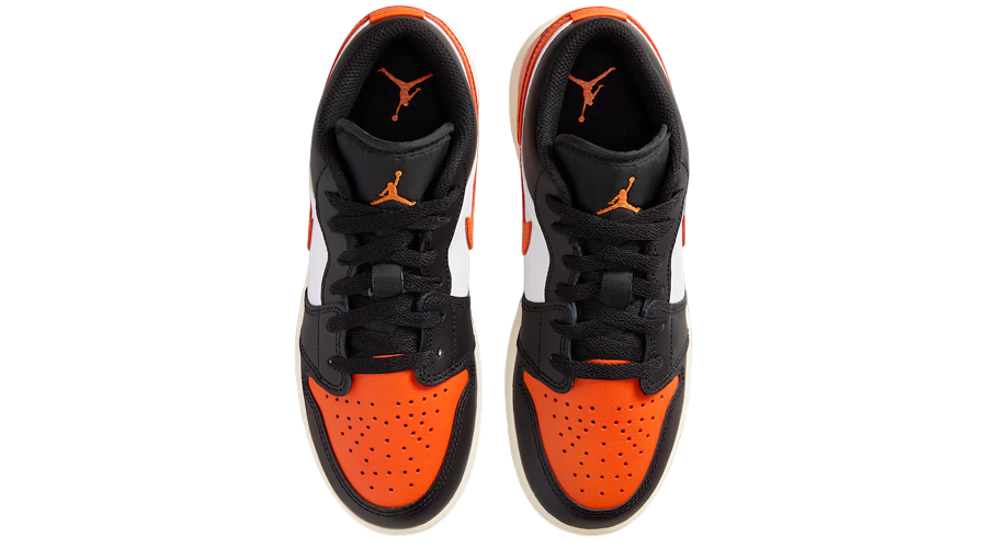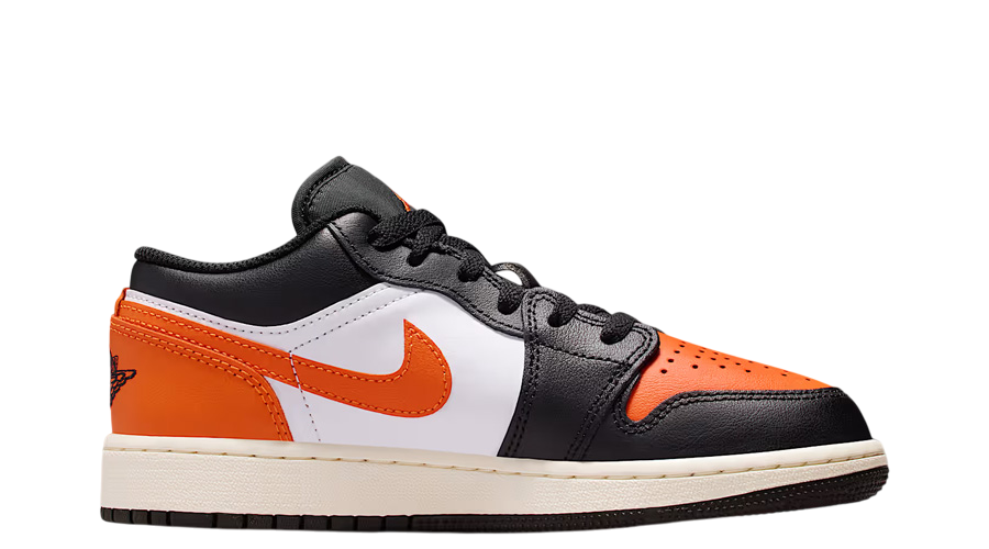 The Air Jordan 1 Low GS “Shattered Backboard 2.0” brings one of the most famous colourways in basketball history to a youth-friendly silhouette. First introduced as part of a series inspired by Michael Jordan’s backboard-breaking dunk in 1985, the orange, black, and white combination remains a standout in the AJ1 line-up. This version keeps the proportions and shape close to the original low-top design while adapting the build for everyday wear.