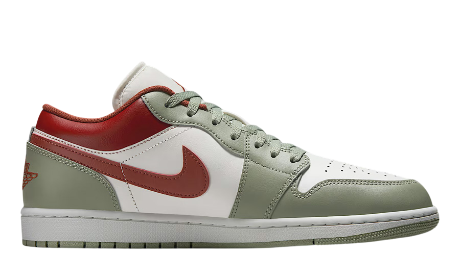 This colourway captures the balance Jordan Brand has always struck with the AJ1 Low — versatility meets character. While the neutral tones ensure everyday wearability, the pops of Redstone create just enough distinction to set it apart from standard general releases. The Jade Horizon shade softens the overall look, giving the sneaker a refined touch that still feels street-ready.