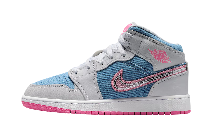 The Air Jordan 1 Mid GS “Denim Sequin” is loud in the best way. It’s a sneaker made for the younger crowd, packed with personality and built on the bones of a classic. This isn’t just a scaled-down AJ1—it’s a bold remix with its own vibe.