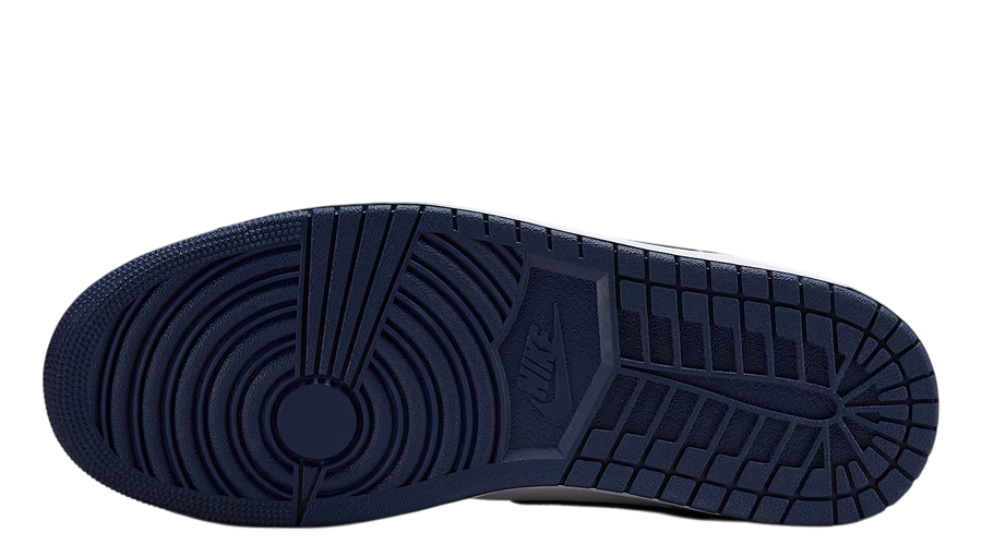 Underneath, the rubber outsole continues the navy theme while delivering that sturdy grip AJ1s are known for. The midsole sticks with white to match the upper and balance the look. Inside, a foam midsole and Air cushioning keep every step light, whether you’re walking around town or pairing them with denim on the move.
