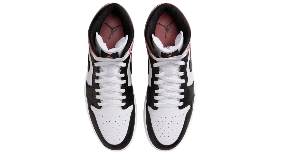It’s a mid-top, which means it brings a slightly more laid-back cut than the original 1985 high-top but still keeps the DNA intact. The Swoosh cuts across both sides in clean white, letting the warm pink tones take the spotlight. Jumpman branding hits the tongue label, and the Wings logo stands proud on the collar—two signatures that lock in its AJ1 status.