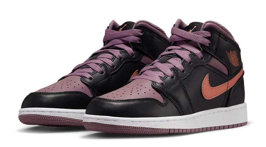 Step into the stylish world of the Air Jordan 1 Mid SE GS “Black Sky J Mauve” FB9909-008, where the timeless design of Air Jordans gets a modern update. This sneaker flaunts a sleek, black leather upper that extends from the mudguard right up to the collar, giving it a sharp, polished look. Adding a splash of colour, Sky J Mauve highlights the toebox, laces, and sockliner, creating a striking contrast that catches the eye.
