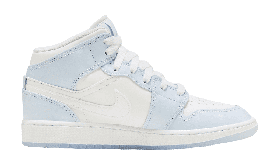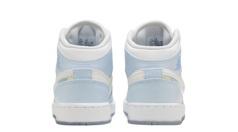 To round off the design, a white midsole provides a crisp contrast, resting atop a translucent, icy outsole that adds an extra layer of style. The Air Jordan 1 Mid SE GS “Glitter Swoosh” combines imaginative flair with practicality, making it an ideal choice for young sneaker enthusiasts seeking a blend of individuality, comfort, and durability.