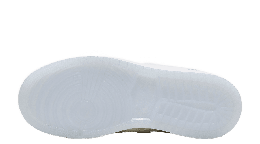 However, the spotlight truly shines on the lateral Swoosh. Here, it undergoes a captivating transformation, adopting a transparent, see-through exterior generously filled with glitter. This distinctive twist injects a hint of sparkle and uniqueness into the iconic Air Jordan 1 silhouette.