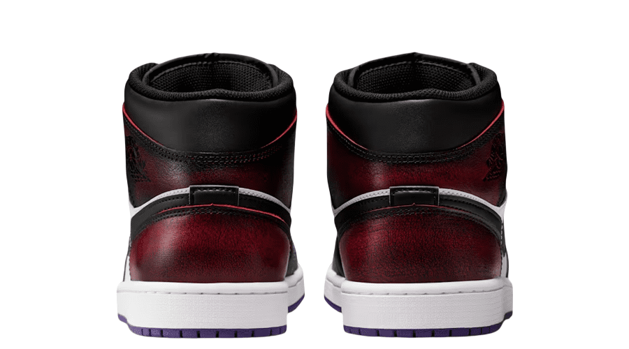 Exposed purple stitching adds texture across the upper, while a yellow toe box brightens the front end. Around the collar and heel, darker hues take over, giving that familiar Chicago-style blocking. There’s even a pre-worn finish around the collar, adding character straight out of the box.