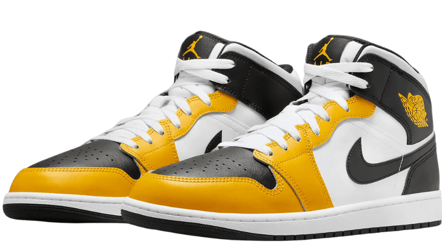 The mudguard and eyestays of the Air Jordan 1 Mid are adorned with vibrant yellow ochre leather, injecting a burst of energy into the sneaker’s aesthetic. This bold choice of color instantly draws attention and sets the tone for the entire design.