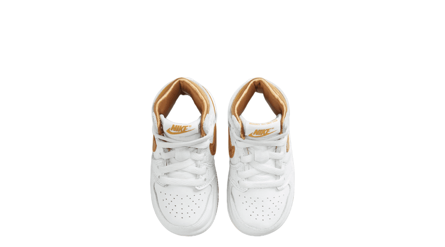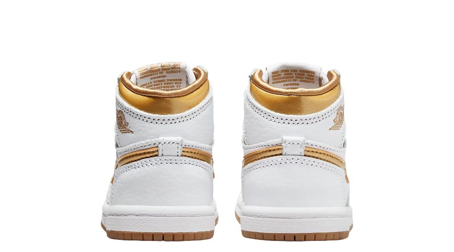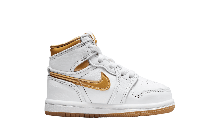 By incorporating the legendary design into footwear for young wearers, the Air Jordan 1 Retro High OG TD “Metallic Gold” blends heritage with practicality, providing a robust choice for children starting their journey in the world of sneakers.