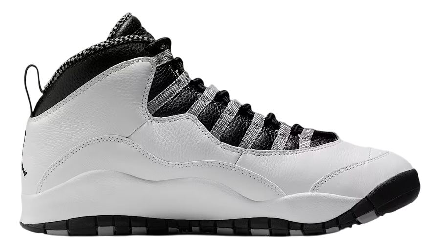 The Air Jordan 10 returns in 2025 with the “Steel” colourway, a design that first appeared during Michael Jordan’s mid-90s comeback. Created by Tinker Hatfield during MJ’s first retirement, the AJ10 became a symbol of transition — from the uncertainty of a post-Jordan league to the shock of his return to the hardwood. The “Steel” edition, with its clean white leather upper, light grey overlays, and black detailing, captures that era’s balance of simplicity and precision.
