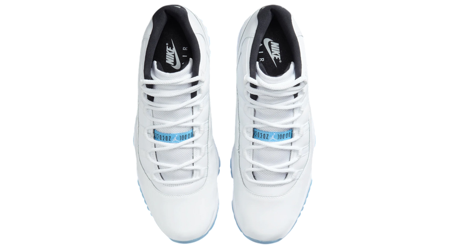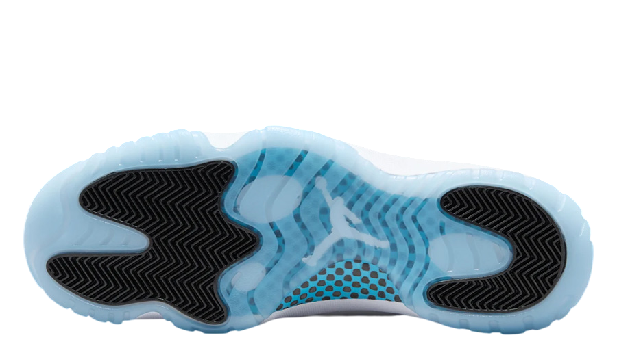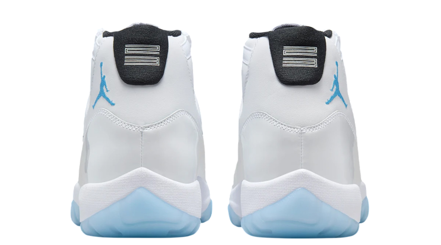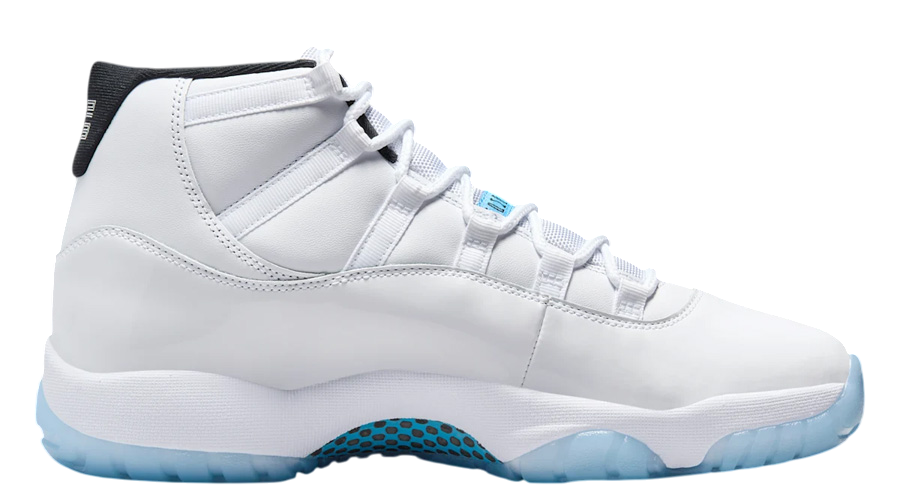 The upper features a clean White base, highlighted by the signature patent leather overlays that define the Air Jordan 11. Accents of Legend Blue appear on the tongue, Jumpman branding, and outsole, while subtle Black detailing adds contrast. The icy translucent outsole not only enhances the shoe’s crisp aesthetic but also pays homage to the original design that first captured attention nearly three decades ago.