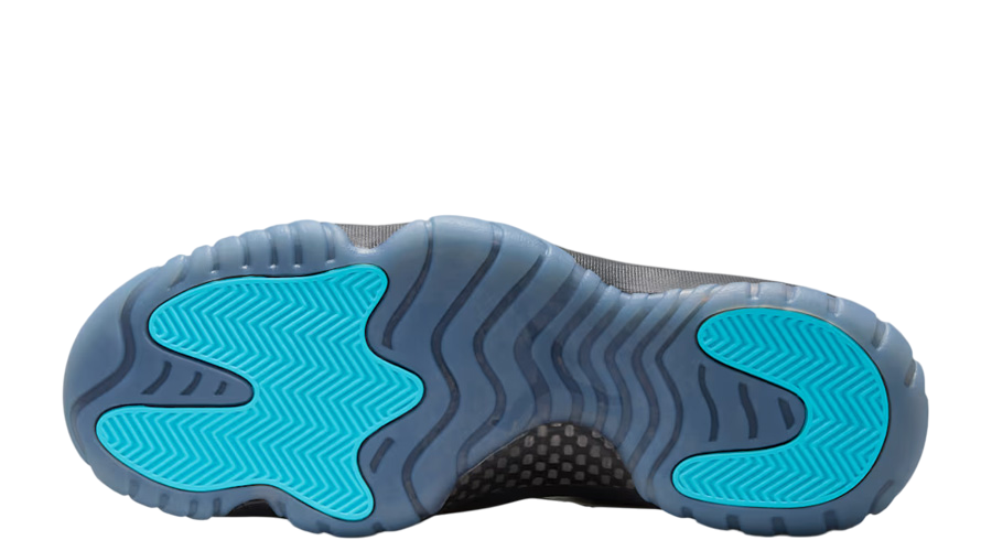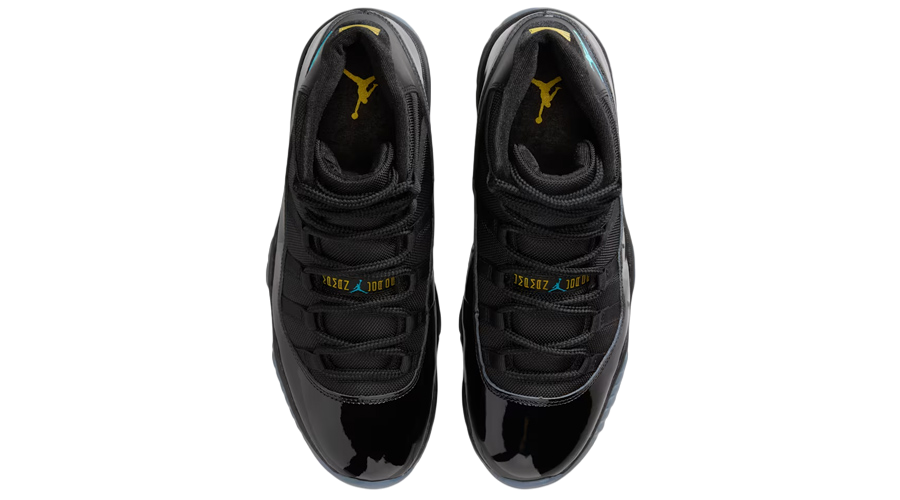 Gamma Blue brings the hit of colour. You’ll spot it on the embroidered Jumpman, stitched neatly into the leather panel on the lateral side. Yellow accents come through on the “23” at the heel and the midfoot strip, giving the shoe that classic AJ11 contrast fans always look for. The mix feels bold without going overboard.