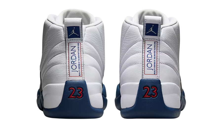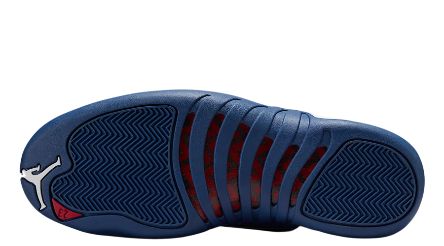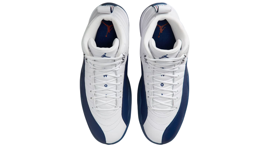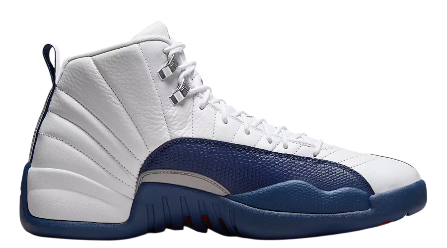 The colour-blocking remains true to the original, with clean white dominating the upper and deep French Blue wrapping the mudguard and midsole. Metallic silver eyelets add subtle contrast near the collar, and the signature “Jumpman” strip at the midfoot carries the same silver branding as before. These elements combine to preserve the energy and prestige the AJ12 has held since its debut.