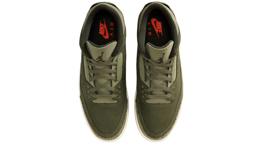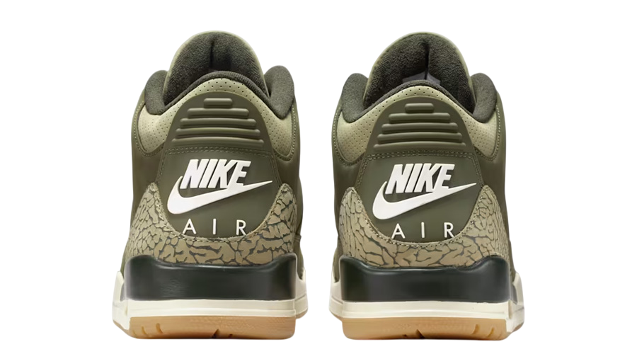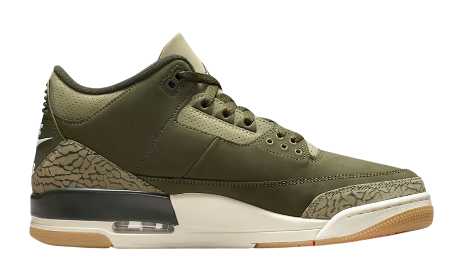 The Air Jordan 3 “Family Affair” steps into rotation with quiet confidence and deep character. Nike dresses the silhouette in Medium Olive nubuck, giving it a rugged edge that feels straight out of a military locker — a nod to past “Flight Jacket” legends. Elephant print panels return in earthy tones, shifting between Sequoia and Neutral Olive to keep that iconic AJ3 texture alive.