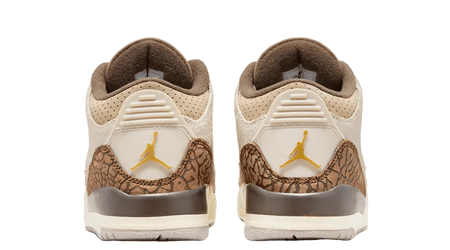 Moreover, the inclusion of metallic gold accents brings a sense of opulence. It also provides an appealing contrast to the overall aesthetic. The Air Jordan 3’s renowned silhouette is easily recognizable, characterized by its visible Air unit, distinctive elephant print embellishments, and the classic Jumpman logo adorning the tongue.